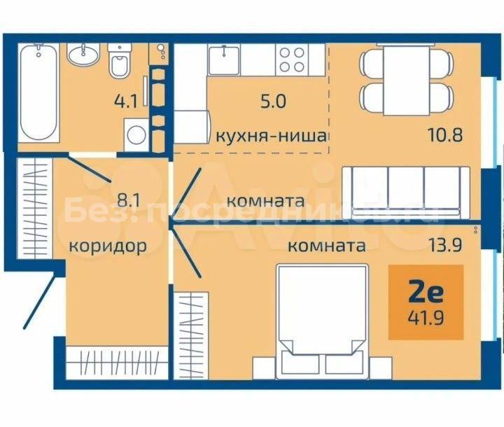 2-к. квартира, 42.4 м², 1/9 эт., от собственника