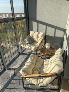 * Большой балкон с панорамным видом на зелёные поля,