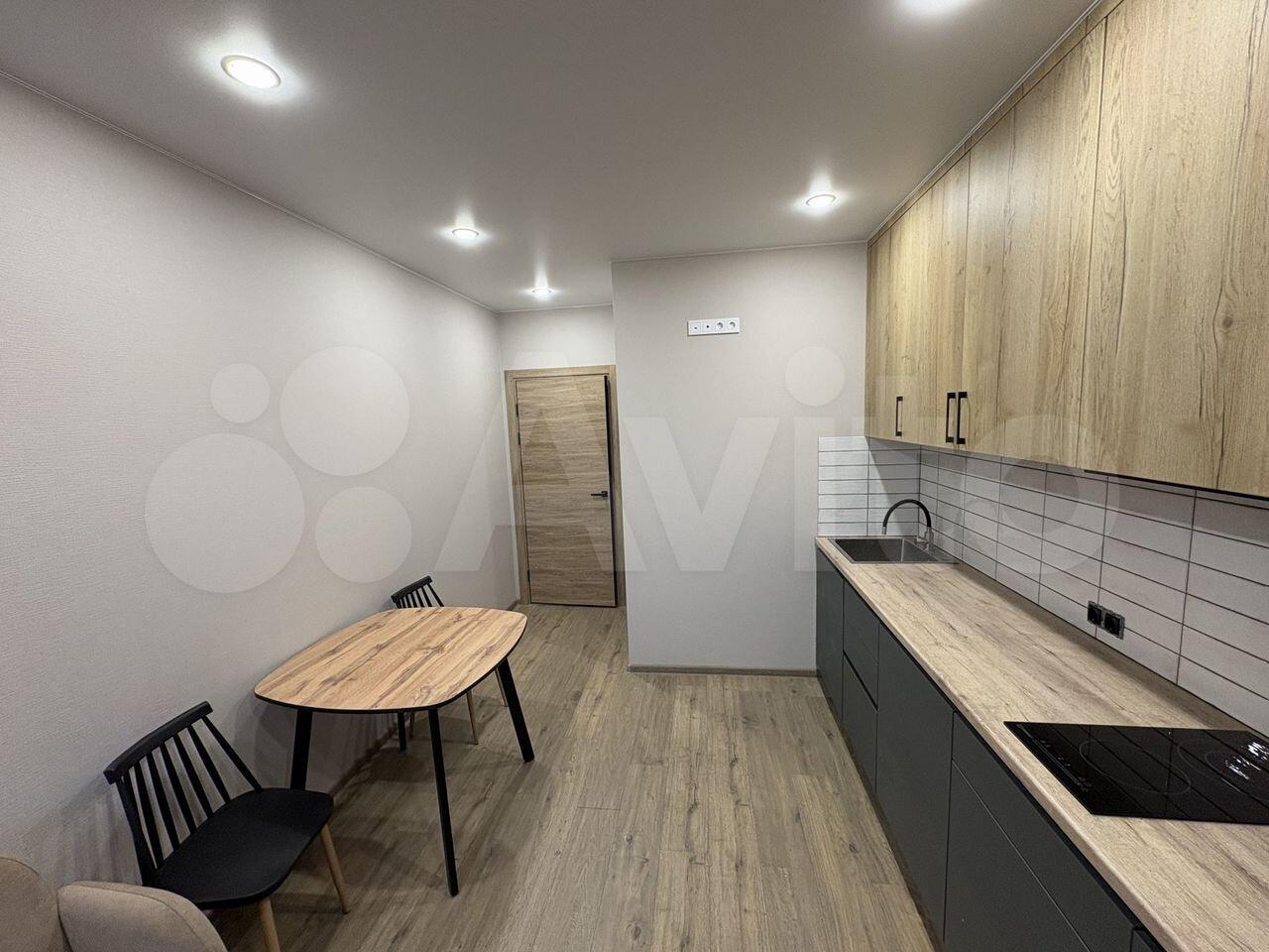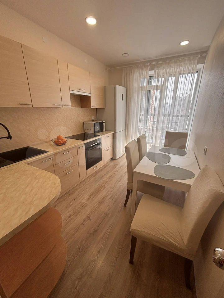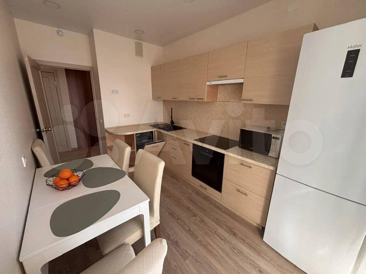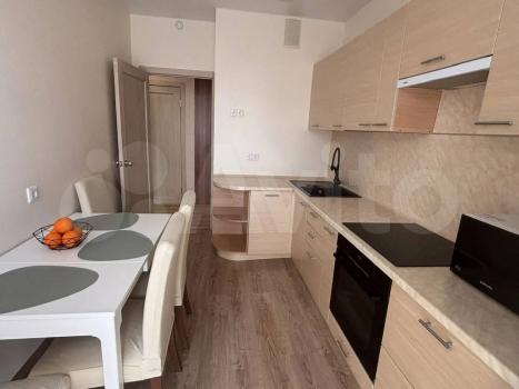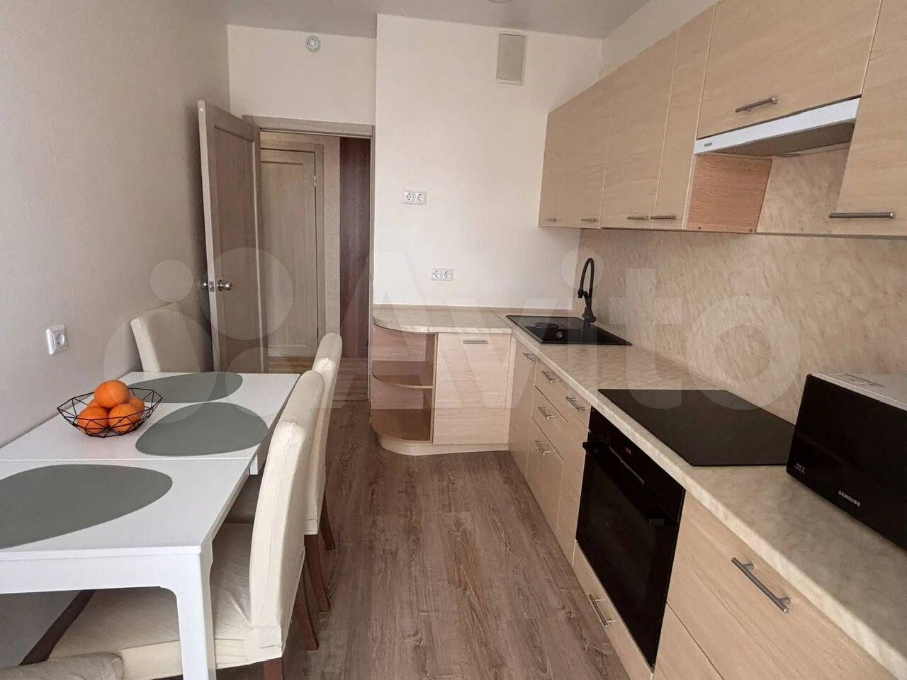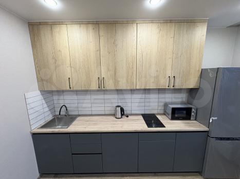 Общая площадь квартиры — 35 м², жилая — 15 м². Просторная кухня площадью 12 м² оборудована всей необходимой техникой, включая холодильник и микроволновую печь. В квартире выполнен свежий евро ремонт, что видно по современному дизайну интерьера и качественным материалам отделки.
