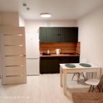 Кухня оборудована современной техникой, включая холодильник, индукционную плиту, микроволновую печь и чайник. Ванная комната совмещенная. Есть водонагреватель и стиральная машинка.