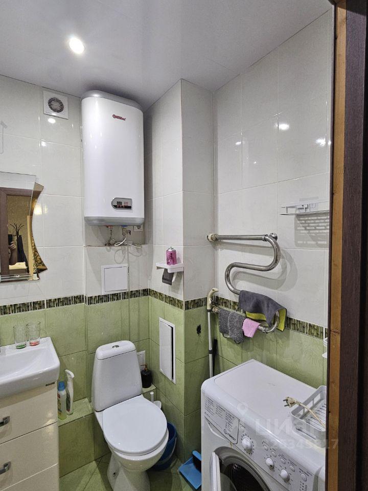 Санузел совмещенный, оборудован стиральной машиной. Из окон открывается вид на город, а балкон застеклен, что позволяет использовать его как дополнительное пространство.