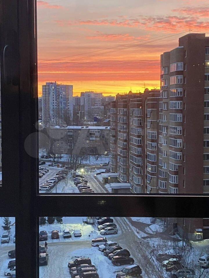 Лоджия застеклена, просторная, красивый вид на шоссе Космонавтов и новую развязку, при этом никакого лишнего шума. В доме есть два пассажирских и один грузовой лифт, а также парковка за шлагбаумом (необходимо отдельно платить за аренду, стоимость низкая).