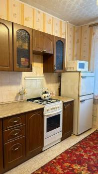 Сдаётся уютная однокомнатная квартира на 4 этаже 5-этажного кирпичного дома. В квартире сделан косметический ремонт, для комфортного проживания в комнате и на кухне есть необходимая мебель (двуспальная кровать с ортопедическим матрасом, письменный стол, шкаф-купе, обеденный стол, стулья) и техника (холодильник, микроволновая печь, стиральная машина), можно сразу заезжать без дополнительных затрат. Квартира разделена на зоны - спальная и рабочая, идеально подойдёт для одного человека или пары. Санузел совмещённый, оборудован ванной.