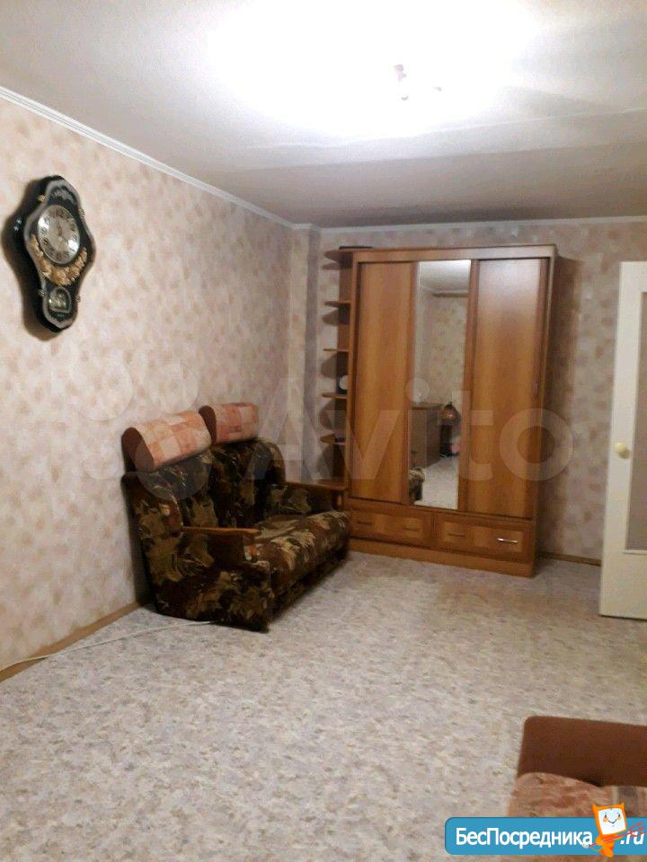 Сдам 1-квартиру на длительный срок. Из мебели диван, шкаф, холодильник,стиральная машина, кух.мебель. 13500 руб.+КУ.