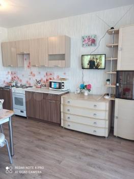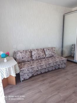 Сдается квартира-студия на длительный срок. В квартире есть всё необходимое для комфортного проживания: кухонный гарнитур, встроенный шкаф в прихожей, очень удобный раскладной диван на котором комфортно как сидеть, так и спать. Помимо этого в квартире есть: холодильник, стиральная машина, чайник и микроволновка. За счёт большого панорамного окна, квартира очень светлая.