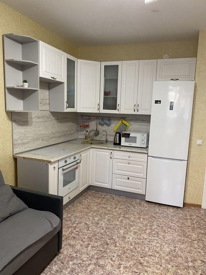 Квартира укомплектована : кухонный гарнитур, холодильник "Vestel", шкаф- купе, шкаф, стиральная машина "LG".