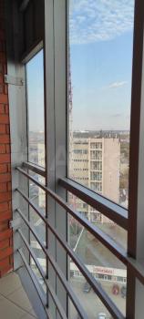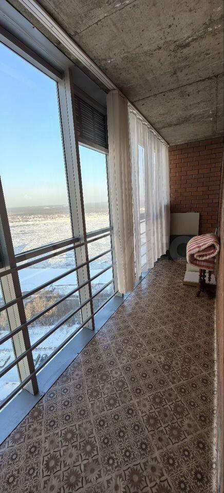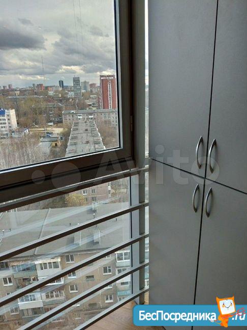 Есть кладовка. Один балкон и лоджия. Окна балкона выходят на Каму. Окна лоджии на весь город.