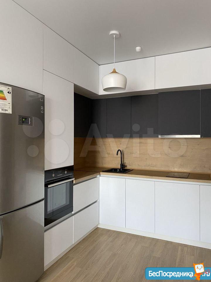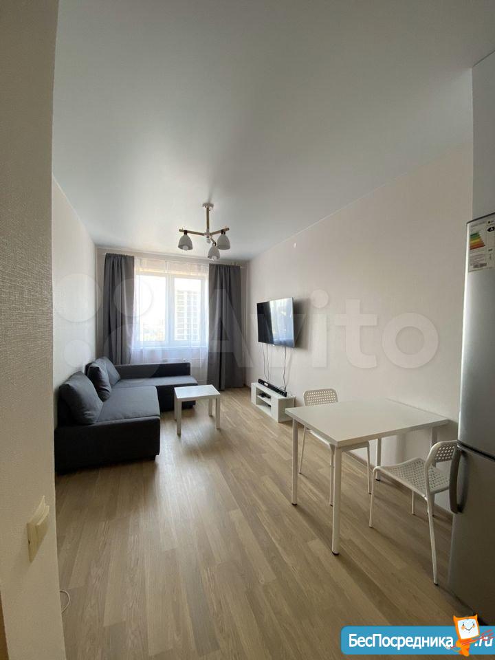 Квартира полностью укомплектована, новая мебель и техника. Большая кухня в потолок, индукционная плита, духовой шкаф, посудомоечная машина, вытяжка, холодильник, микроволновая печь. Диван, большой телевизор, саундбар, тумба под ТВ,пылесос. Обеденный стол и стулья. В спальне кровать 160*200 с матрасом и напольная вешалка. Стиральная машина, сушилка для белья.