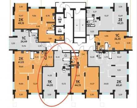 ?Плoщaдь квартиpы 41,8 кв.м
