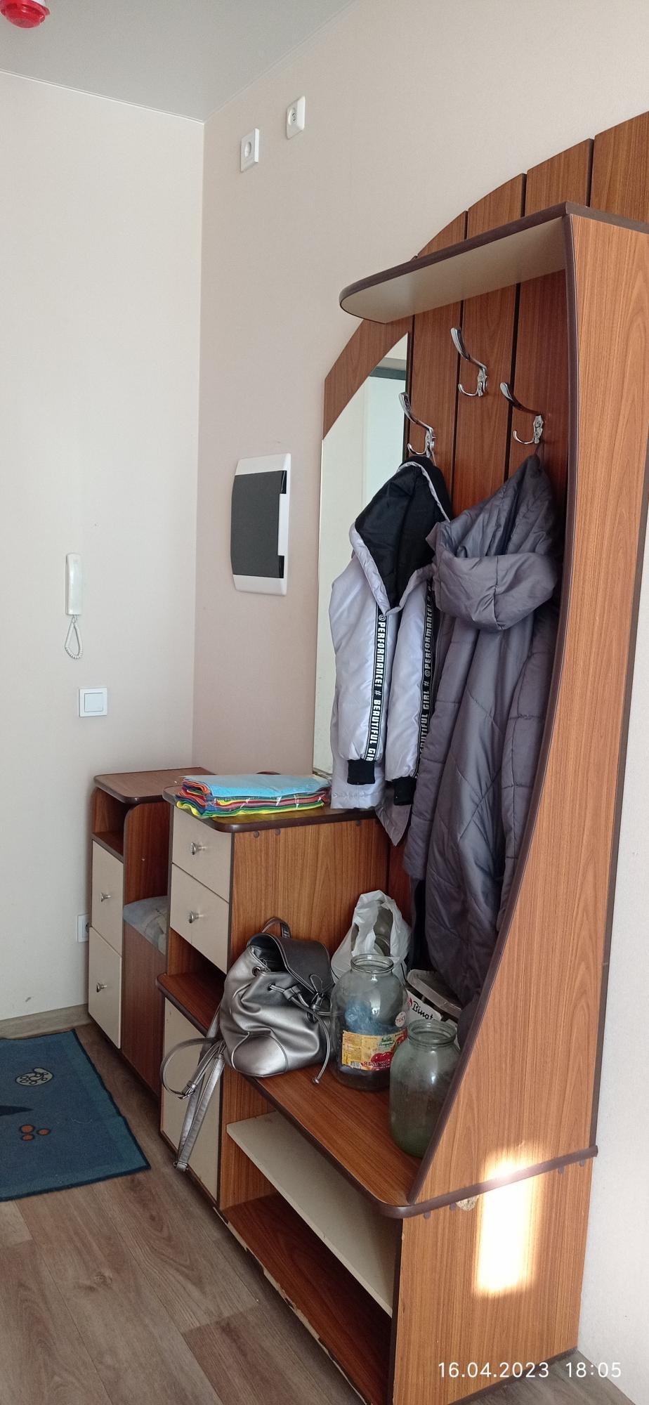 Квартира мебелирована: есть диван, кровать, письменный стол, вместительные шкафы в каждой комнате и в прихожей, кухонная мебель, так же есть стиральная машина, микроволновка и холодильник.