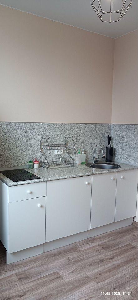 В квартире имеется все необходимое: кухонный гарнитур, варочная поверхность, холодильник, электрический чайник, стиральная машина, новый диван, шкаф-купе.