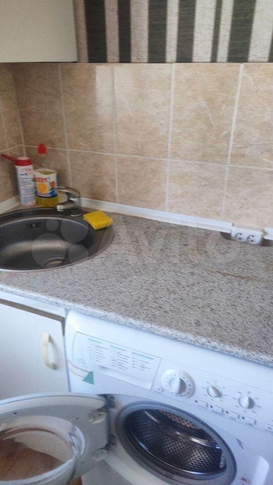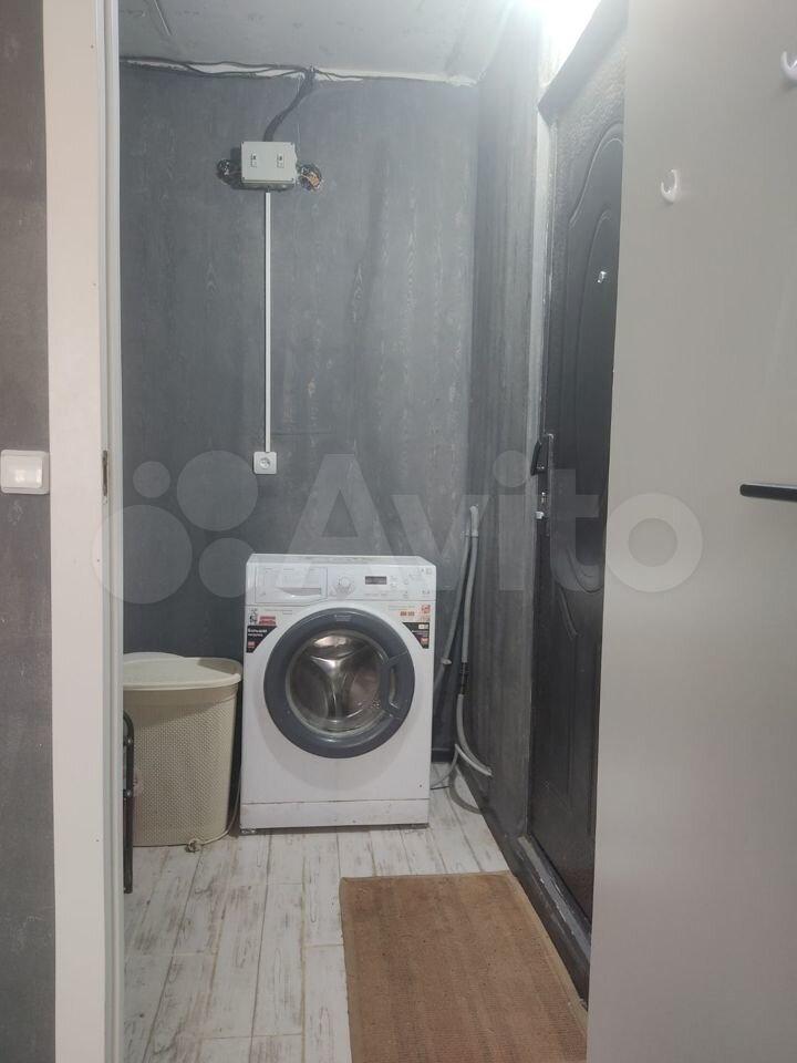 - Mинимальный кухoнный гаpнитуp, cтиpaльная мaшинa, плитa.