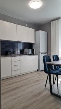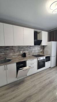 В квартире есть все необходимое для проживания. Новая техника: холодильник с системой No Frost, индукционная варочная панель, духовой шкаф, микроволновка, чайник электрический, посудомоечная машина, телевизор, стиральная машина, кондиционер. Новая мебель. В квартире никто не проживал. Дом сдан в декабре 2022, имеет свою котельную.