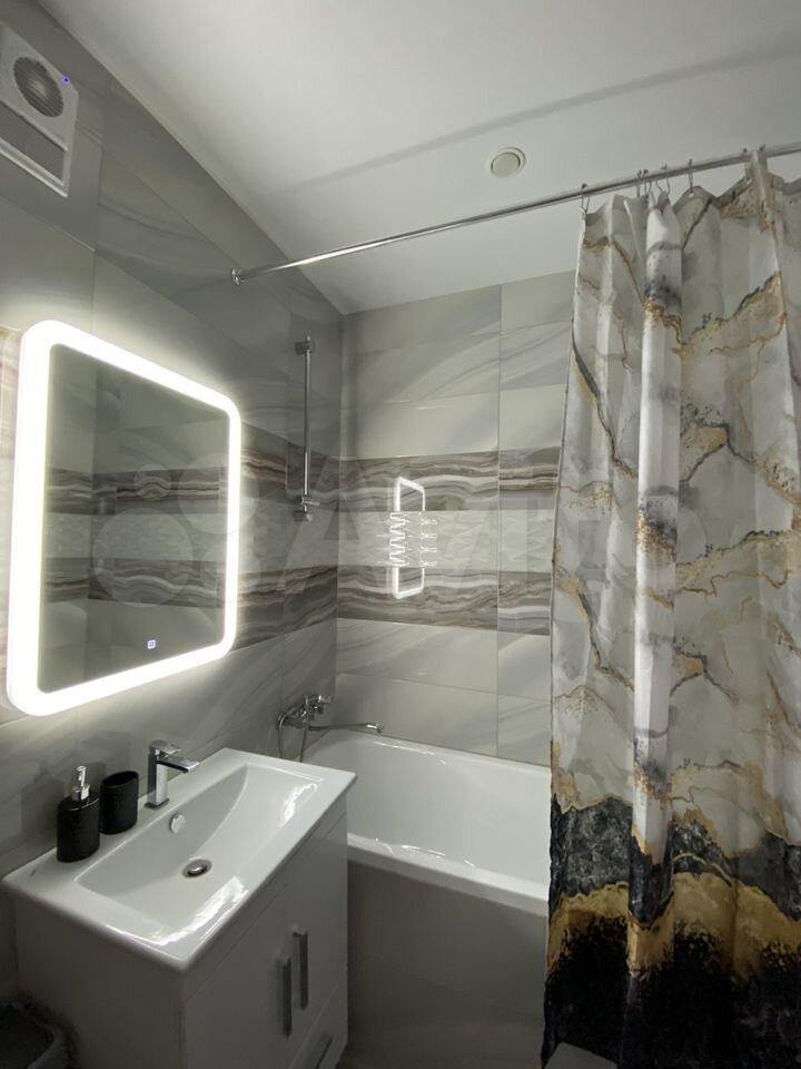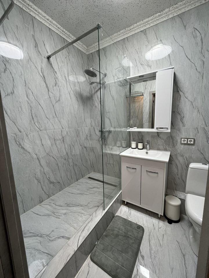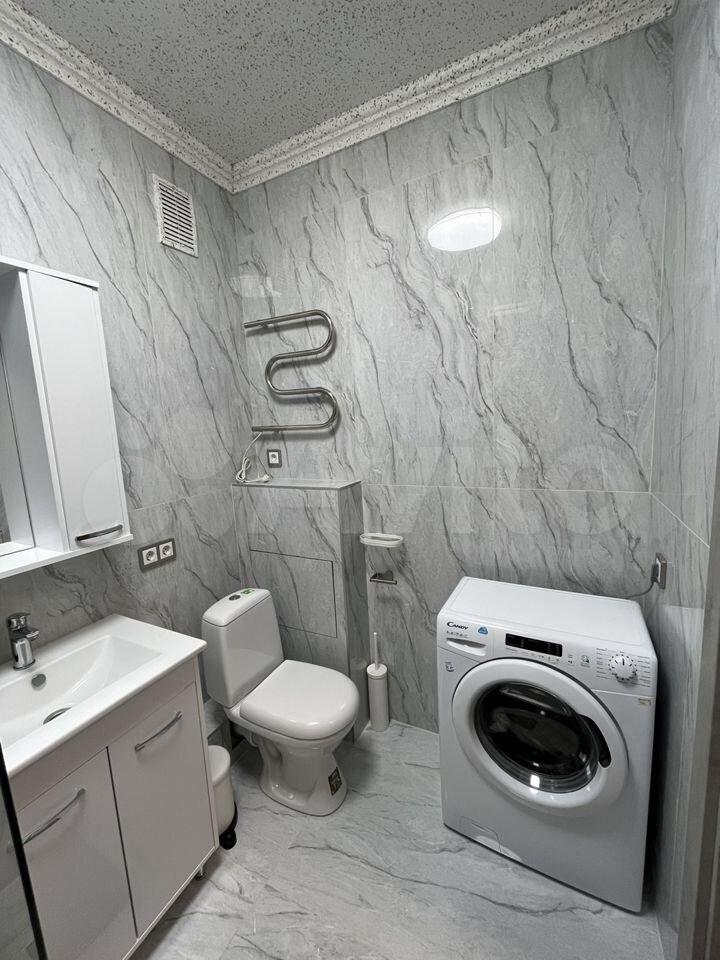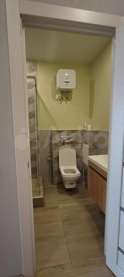 В квартире совмещенный с/у, душевая кабина, водонагреватель.