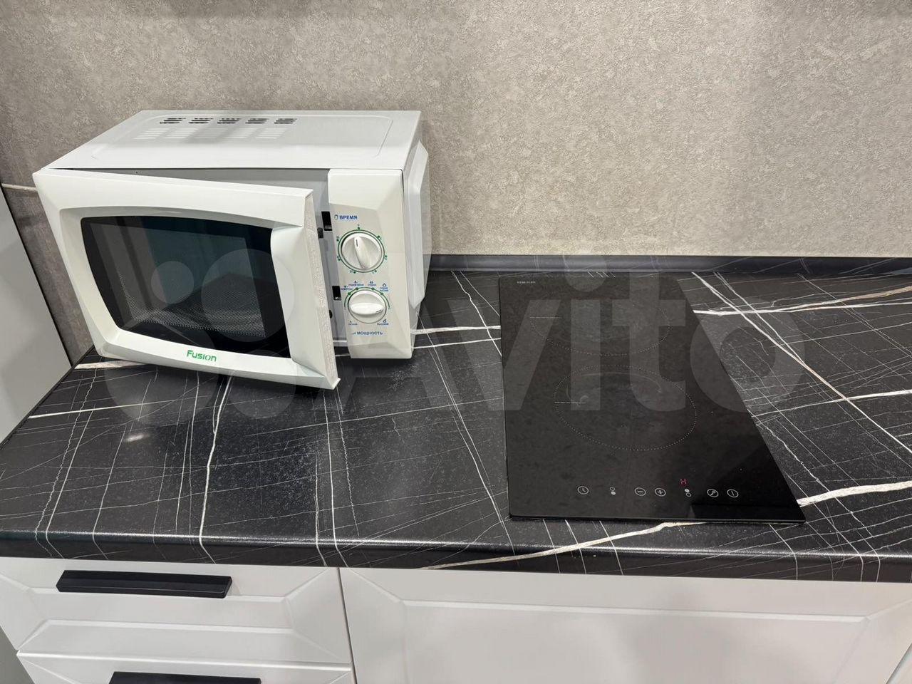 Из мебели - кухня, варочная панель, шкаф.