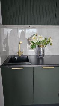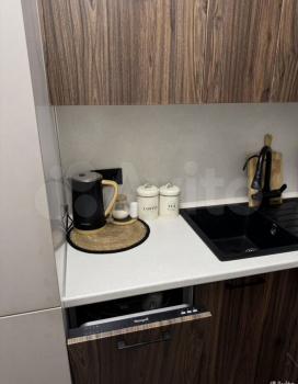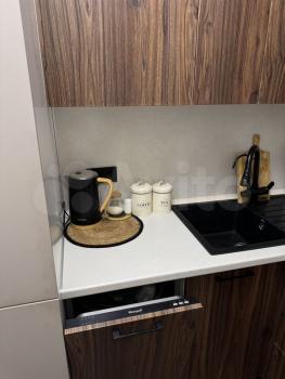 Техника: встроенная микроволновая печь,встроенная духовая печь, встроенная посудомоечная машина, варочная поверхность, встроенный холодильник, телевизор, чайник. Так же, робот пылесос.