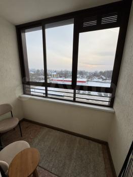 • Застекленная лоджия из кухни-гостиной с местами для отдыха.