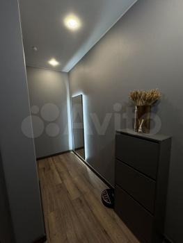 * Коридор с комодом для обуви и большим шкафом для одежды, большое зеркало с подсветкой. Свет в коридоре вкл на движение.