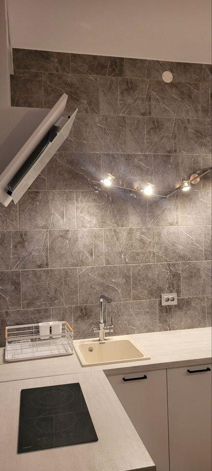 Новая однокомнатная квартира в центре с хорошим ремонтом. В квартире есть отдельная 2 спальная кровать в нише с отдельным освещением и потолочным вентилятором, диван, телевизор, рабочее место. Сан узел совмещенный с большой душевой кабиной. Кухня оборудована всем необходимым: эл плита, вытяжка, холодильник, микроволновка, чайник. Отдельная гардеробная со стиральной машиной.