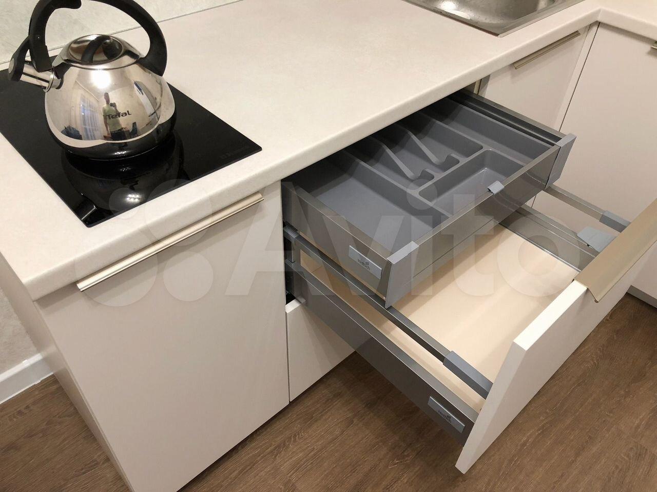 Кухонный гарнитур оборудован всем необходимым для приготовления кулинарных изысков и праздничных угощений: варочная поверхность, духовой шкаф, микроволновая печь, чайником, холодильник конечно с системой Nо Frоst.
