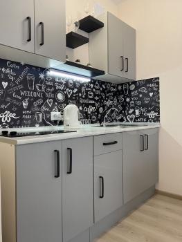 В квартире есть вся необходимая мебель и техника для комфортной жизни. На кухне установлена современная мебель, а в комнате - всё для вашего удобства. Из техники - холодильник, телевизор и стиральная машина. Санузел совмещённый и оборудован душевой кабиной. Также в квартире проведён интернет.