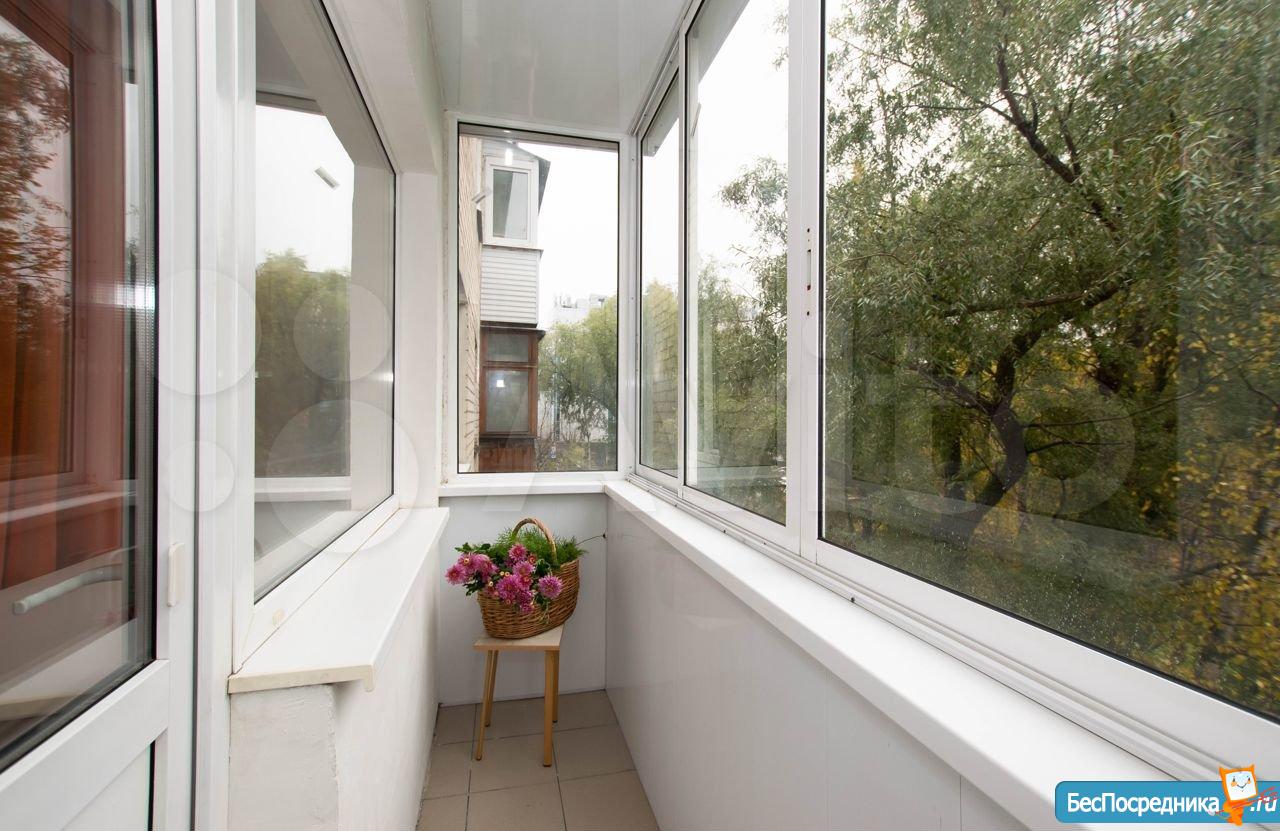 Балкон застеклен, вид из окон на сквер.