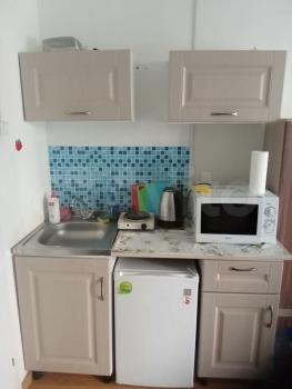 санузел - совмещённый, мебель - кухня, хранение одежды, спальные места, холодильник, плита, микроволновка, стиральная машина, телевизор.