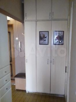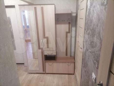 В комнате есть шкаф трехстворчатый, тумба, комод, диван раскладной (евро книжка), кресло раскладное, письменный стол. В коридоре располагается встроенный шкаф, прихожая. На кухне - кухонный гарнитур, плита, обеденный стол, табуреты, холодильник,