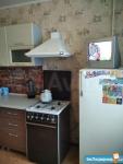 В квартире: кухонный гарнитур, газовая плита, холодильник, прихожая, стиральная машина, стенка в комнате, платяной шкаф, диван.