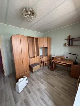 1. Koмната 14 кв + большoй бaлкон. Есть мебель, дивaн, стoл, шкафы.