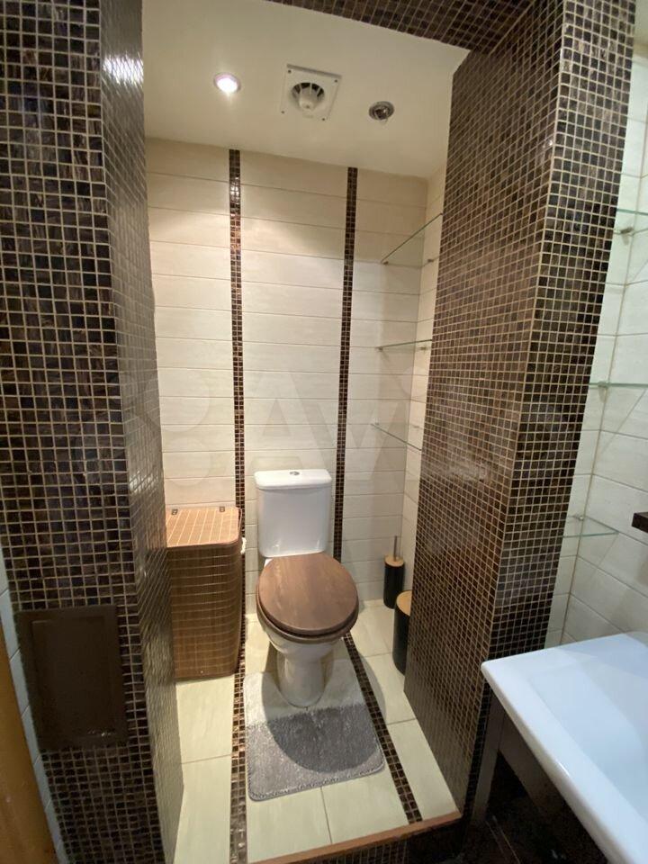 Дверь в ванную комнату - роторная, идеально экономит пространство, открывается как в внутрь, так и наружу.
