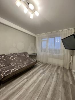 Одноомнатная квартира в Перми по адресу: Хабаровская улица, 54, 12/18 этаж. Ремонт косметический, мебель и техника на фото видны.