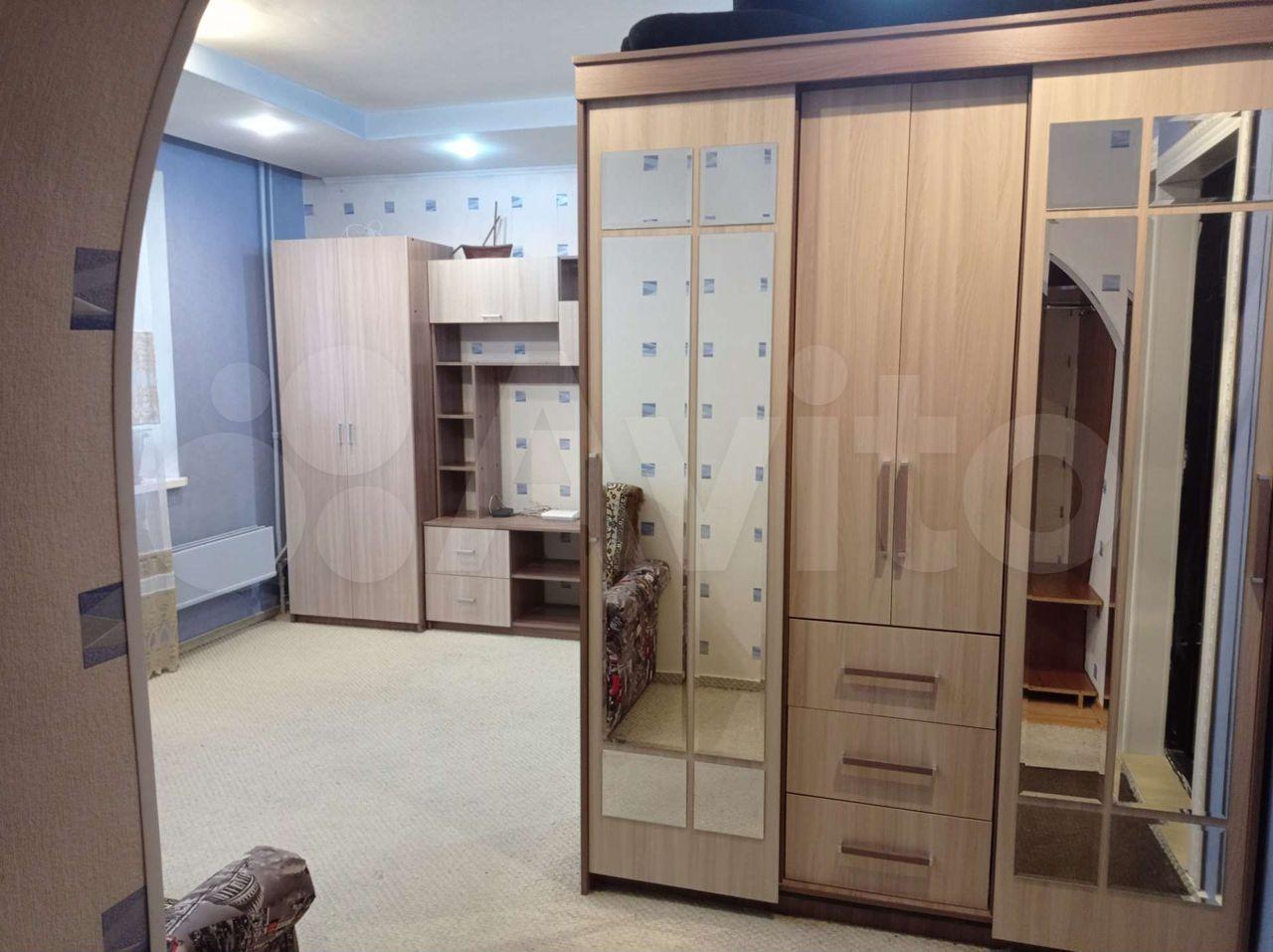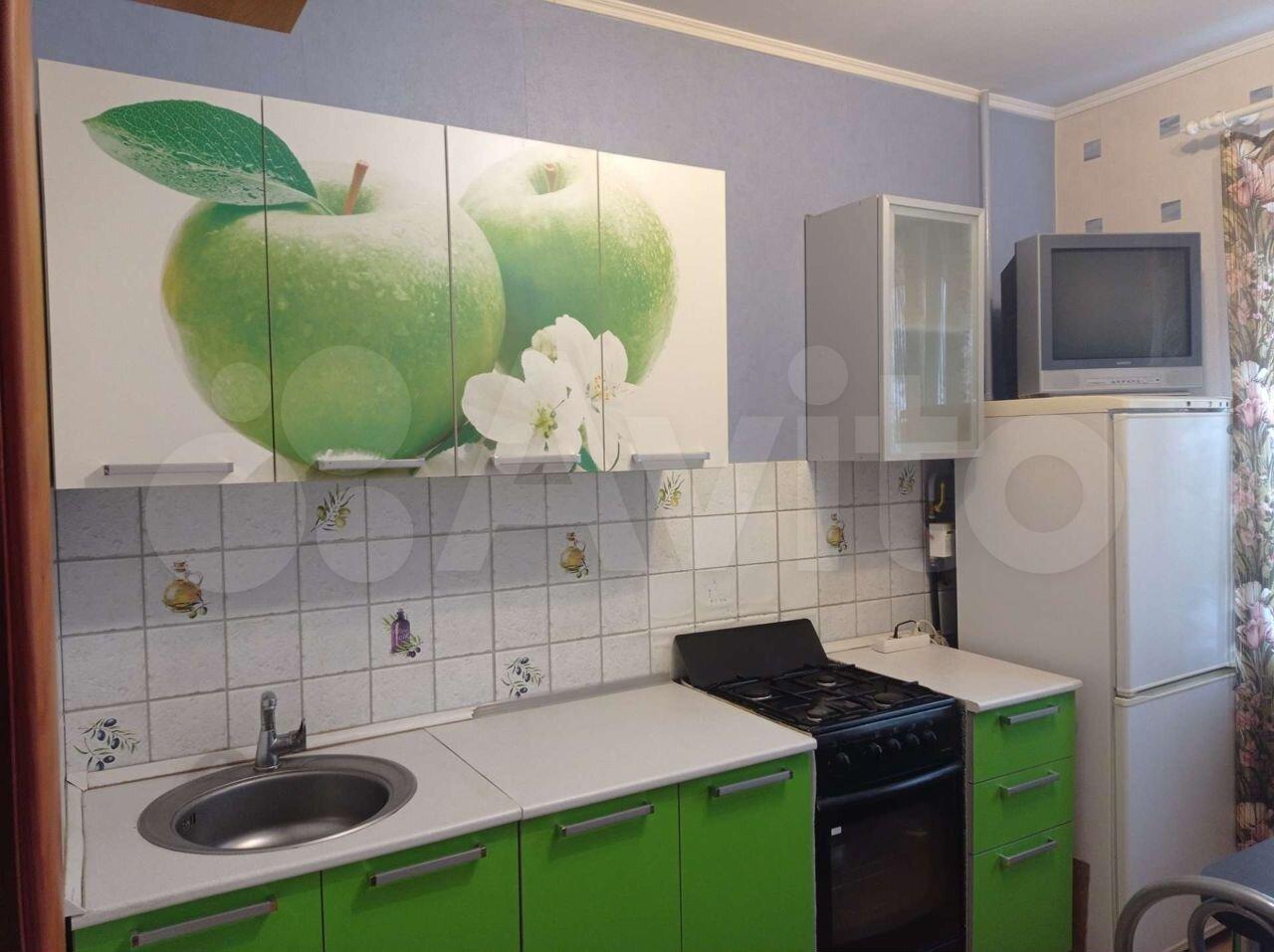 имеется диван на 2 спальных места, стол, большой шкаф, тумбочка. В кухне в вашем распоряжении стол, плита, микроволновка, стиральная машина, холодильник. Заселение