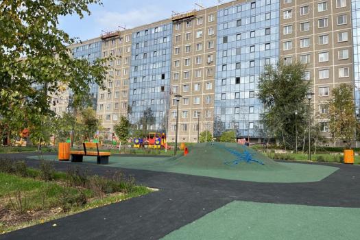 Возле дома находится большая детская площадка, спортивная площадка с беговой дорожкой и зона отдыха.