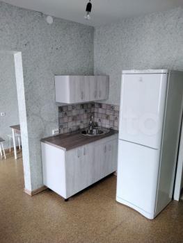 Без мебели .Есть холодильник.