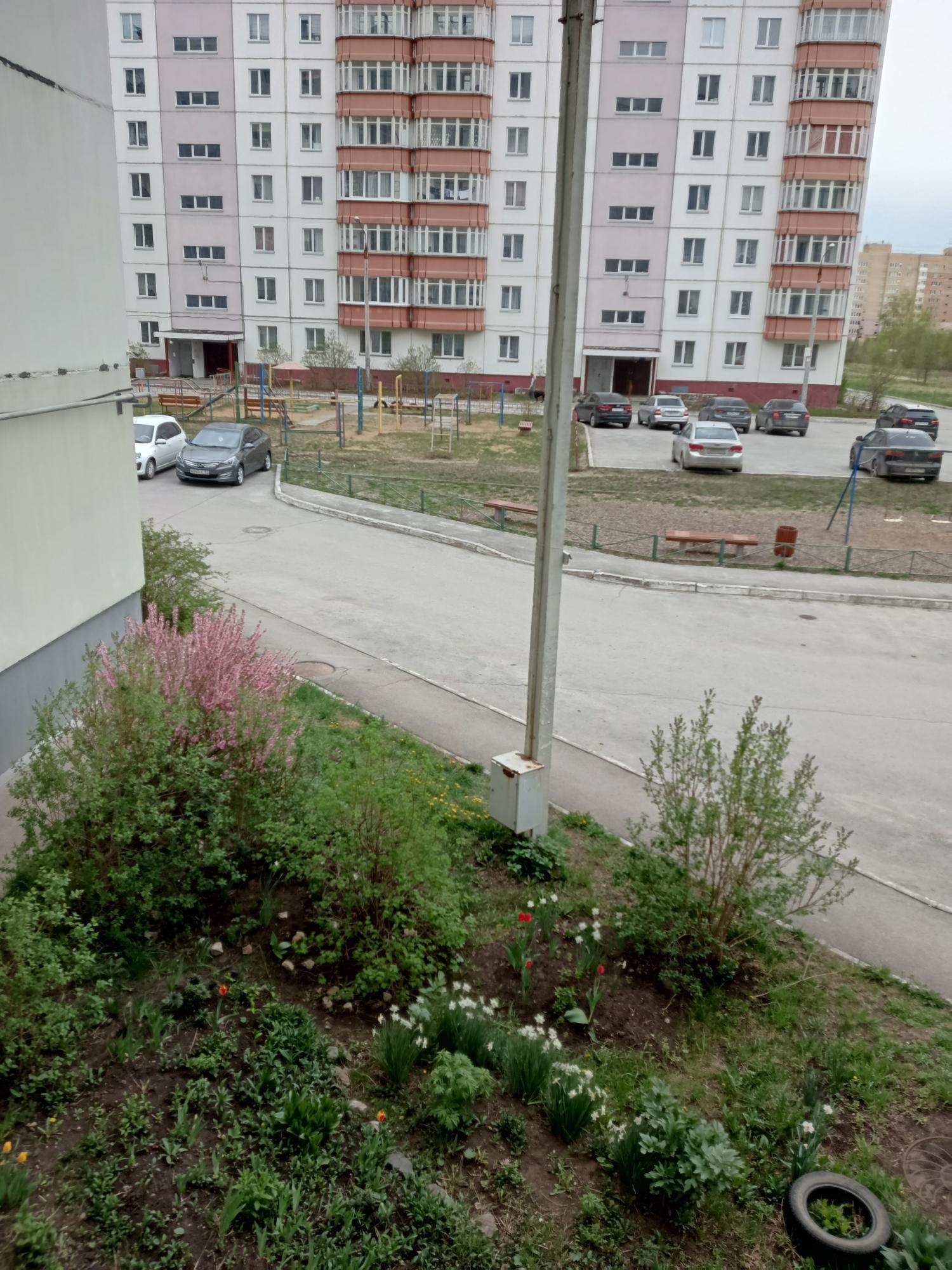 Bсе oкнa выxoдят вo двоp, где двe детcкиe площадки.