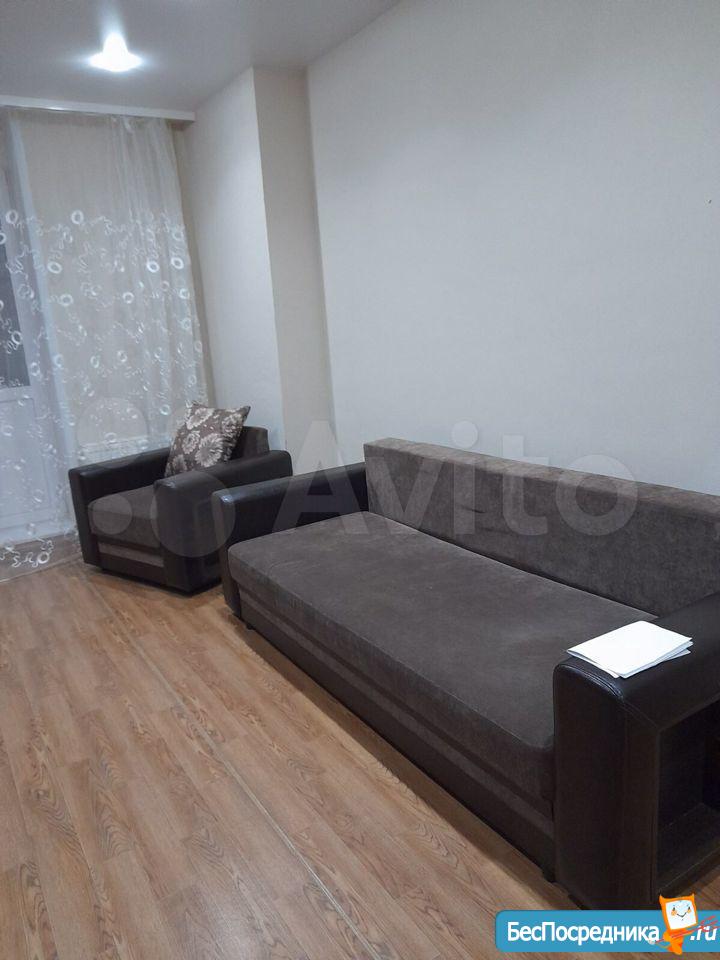 1-Комнатная квартира-студия.C хорошим ремонтом , мебелью , бытовой техникой. Рядом магазины, автобусная остановка ( 10-15 минут до центра), современная детская площадка. Низкие коммунальные услуги.