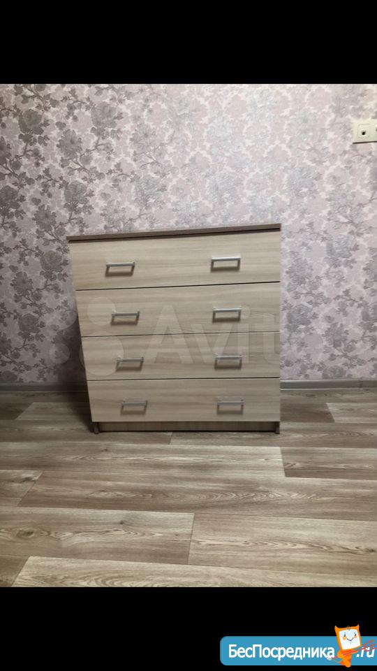 В комнате есть вся необходимая мебель - шкаф, диван, стул, стол, комод.
