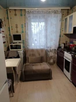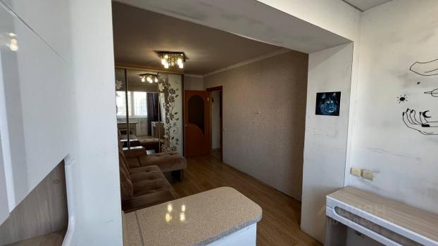 В квартире выполнен косметический ремонт. Просторная комната оборудована диваном и рабочим столом. Кухня светлая и функциональная, оснащена газовой плитой и холодильником. Санузел раздельный, что добавляет удобства.