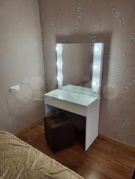 Имеется новый диван и шкаф, трюмо, письменный стол, отдельная гардеробная комната. Кухонный гарнитур, холодильник, стиральная машина, электроплита.