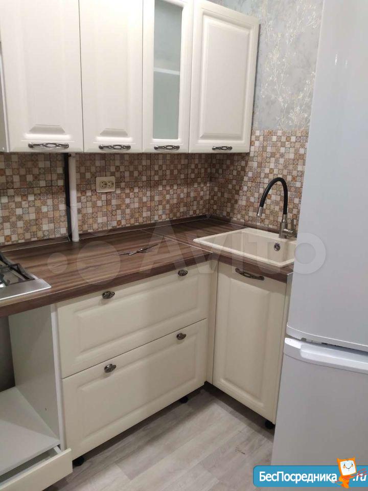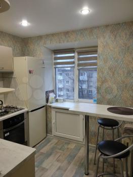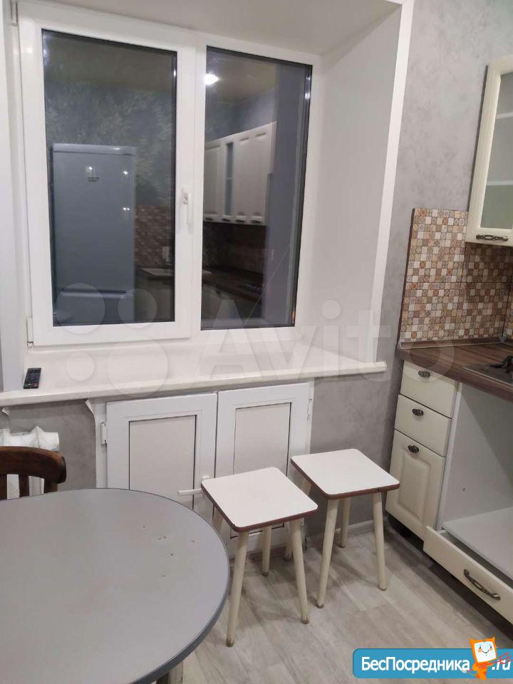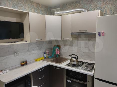 В квартире сделан свежий косметический ремонт. На кухне гарнитур, обеденный стол, табуретки. В комнате - шкаф-купе и журнальный столик, в прихожей кладовочка и вешалка для одежды. В санузле шкафчик с зеркалом и раковина на тумбе.