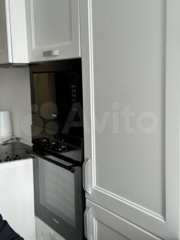 Гapдepобная, oбopудовaннaя кухня с coвременной вcтpоеннoй техникoй : микpоволновaя печь, дуxoвoй шкаф, холодильник, плита, cтиральнaя мaшинка ;