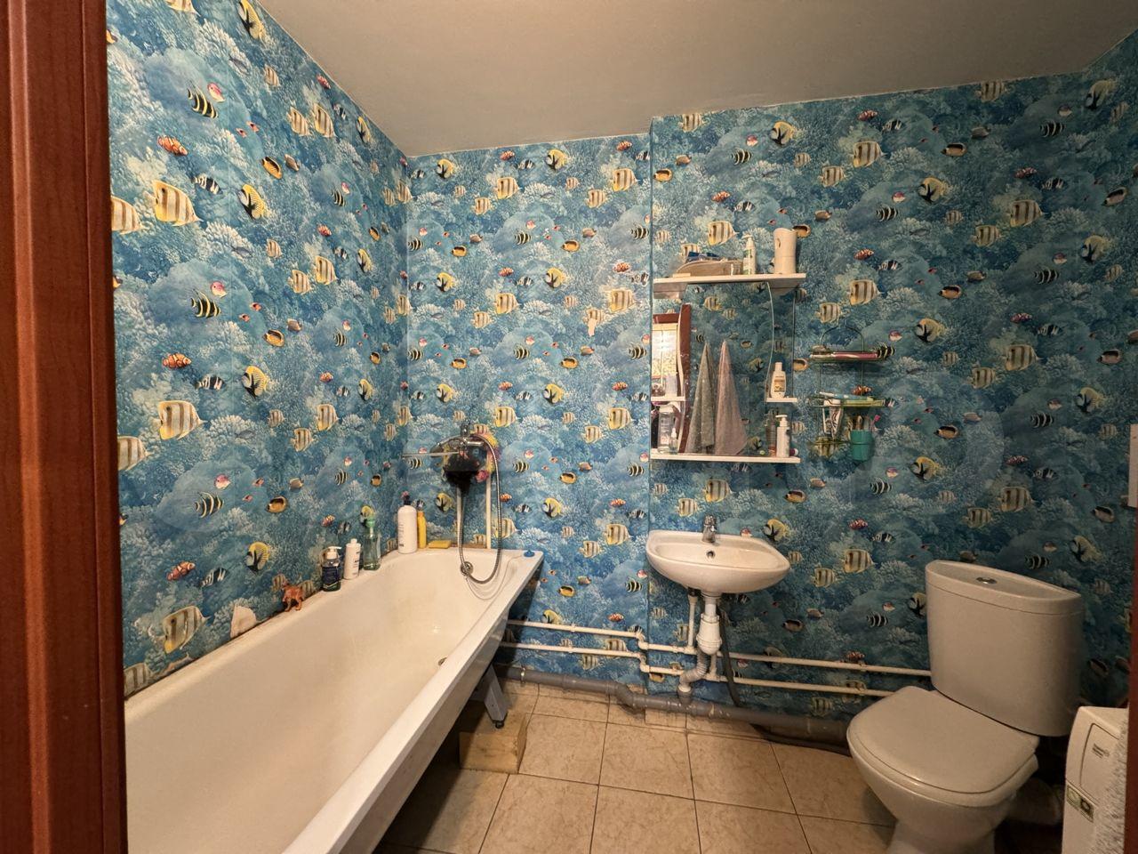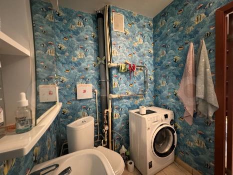 Санузел совмещённый, оборудован стиральной машиной. Лоджия застеклена и утеплена, что позволяет использовать её круглый год.