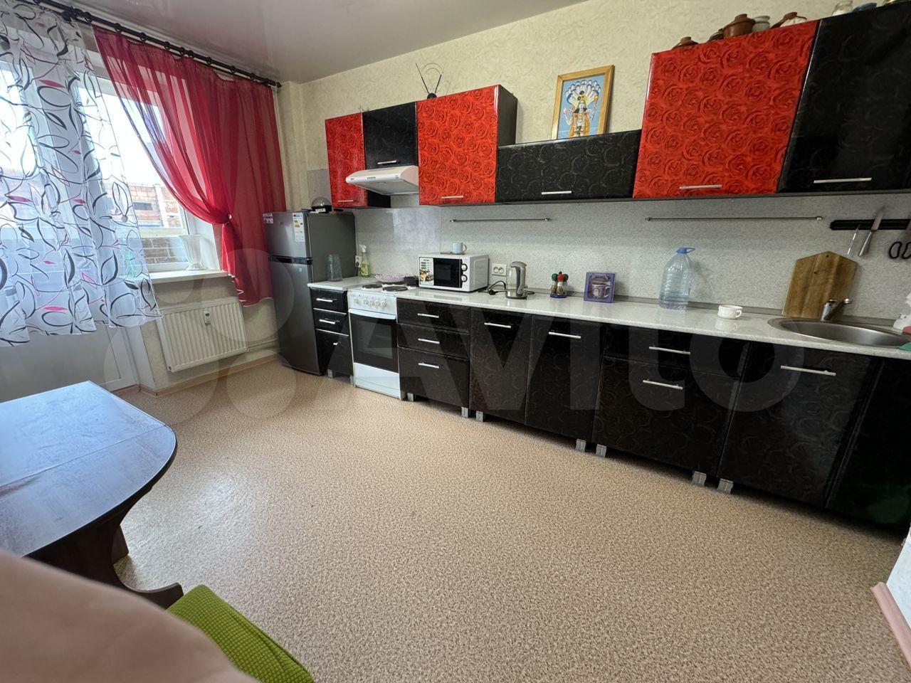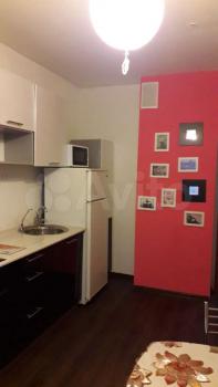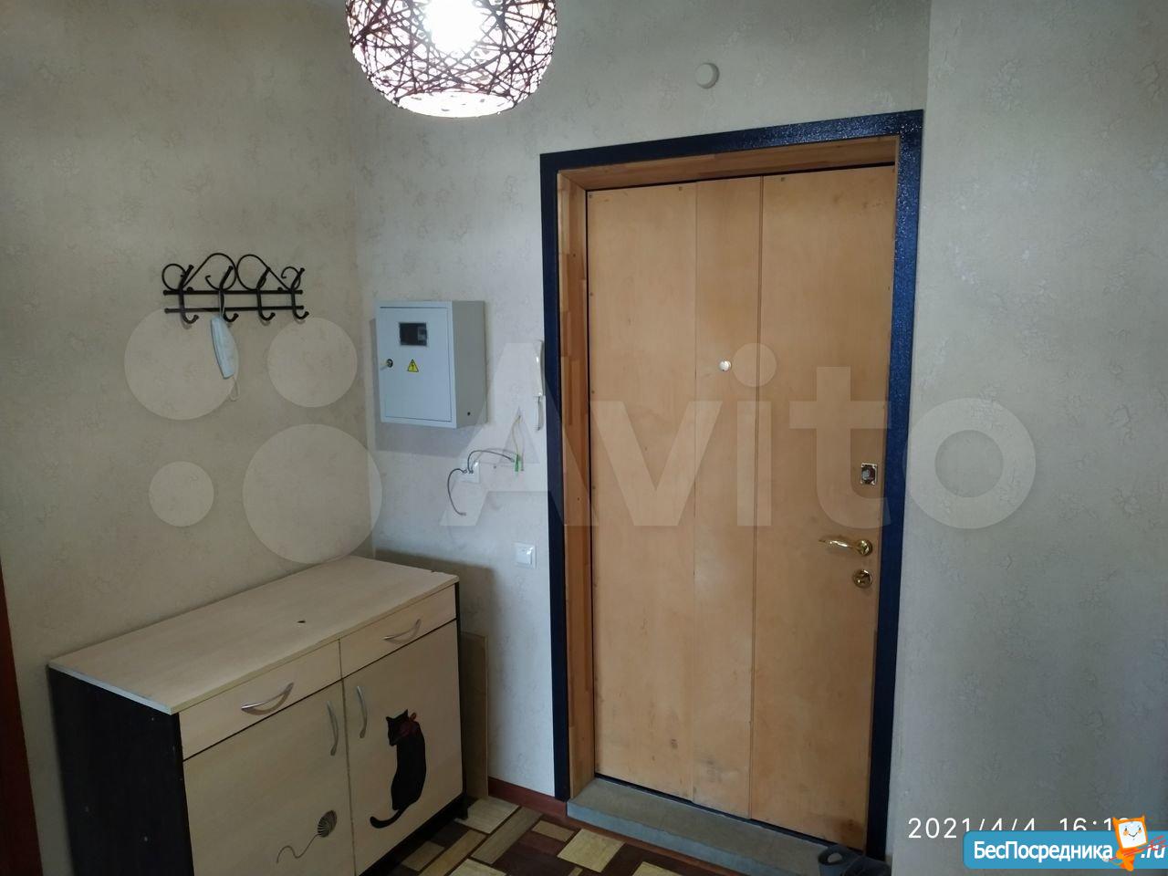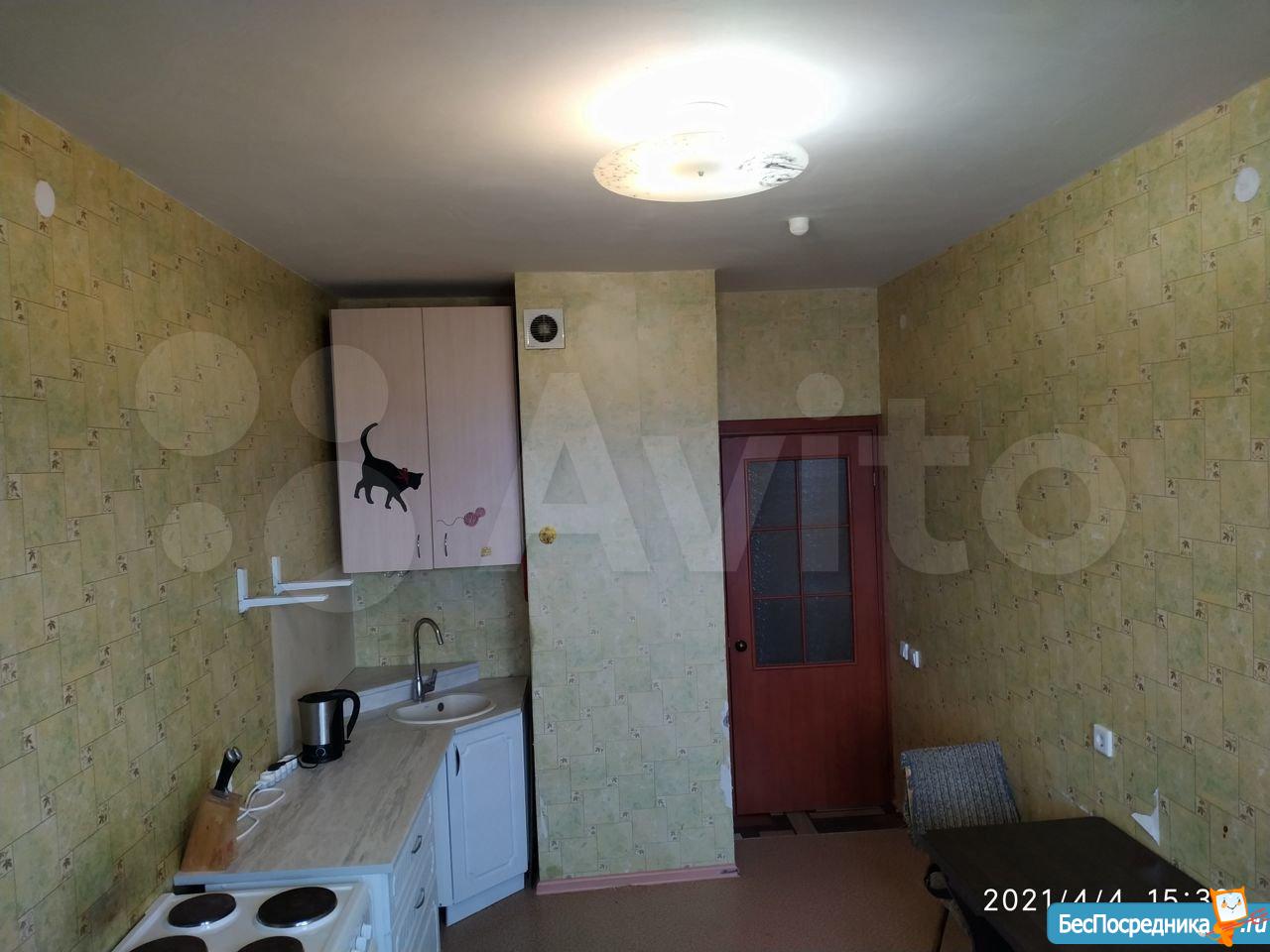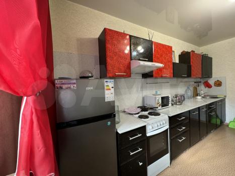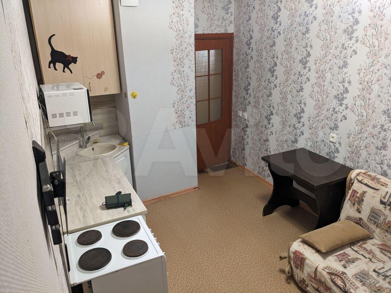 В квартире выполнен косметический ремонт. Просторная кухня оснащена необходимой бытовой техникой, включая холодильник и микроволновую печь. В комнате установлены шкафы для хранения вещей.