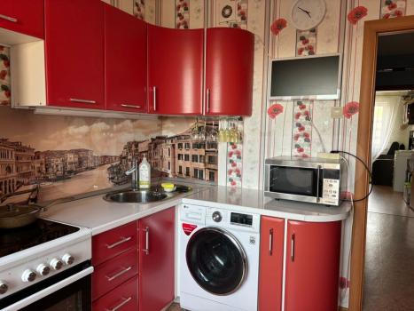 В квартире имеется (холодильник, свч, кондиционер, чайник, стиральная машина, водонагреватель, телевизор)