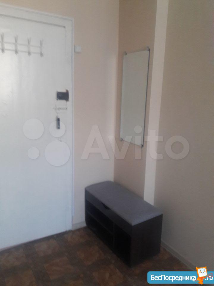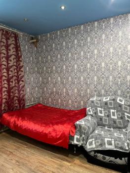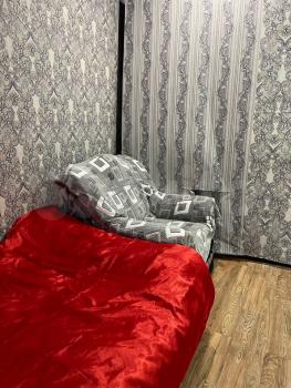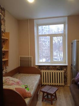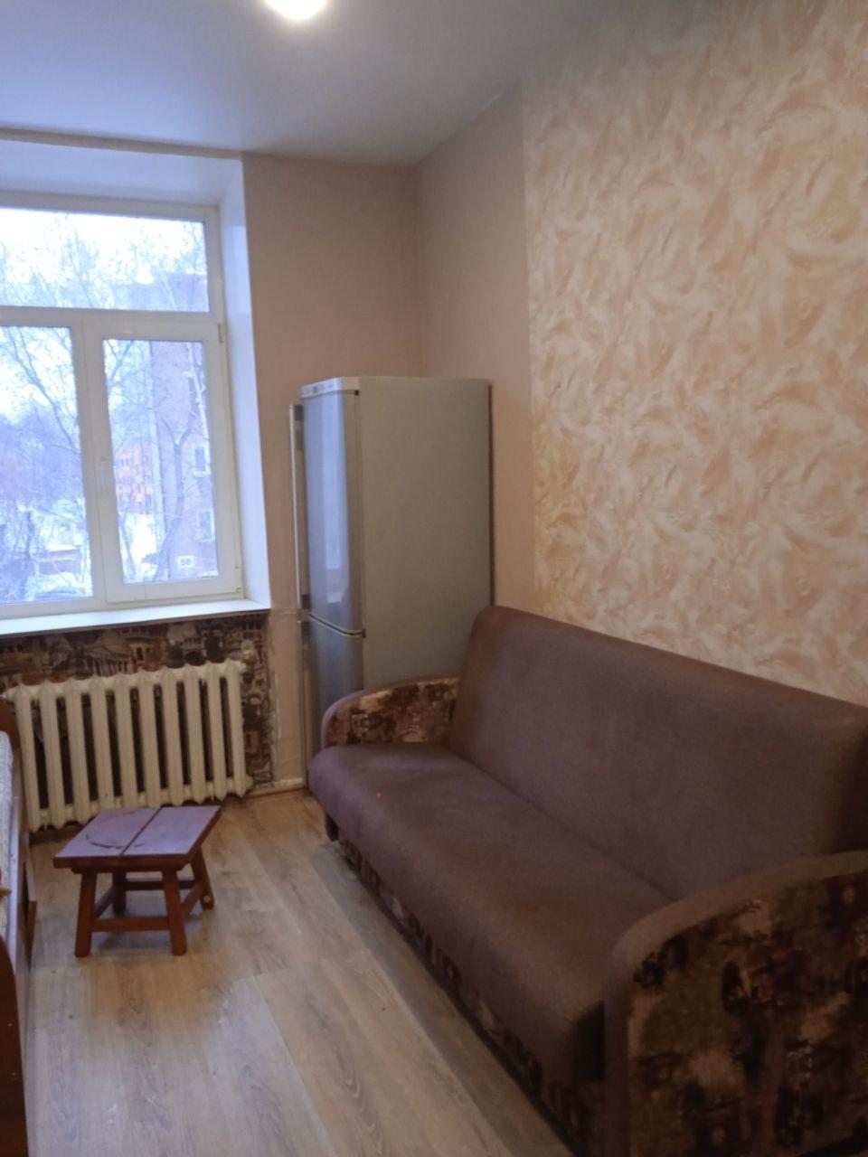 Чистая, светлая, в общежитии коридорного типа. Диван, кровать, холодильник, микроволновка, шкаф.