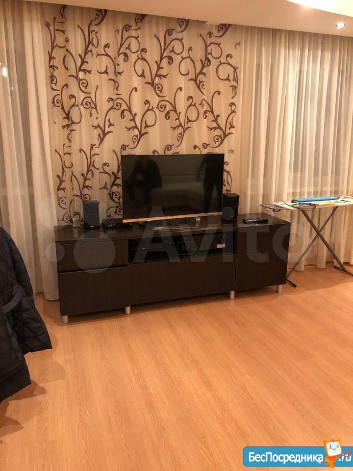 Квартира полностью обустроенная. Есть вся техника: варочная поверхность, духовка, вытяжка, микроволновка, холодильник, стиральная машина, телевизор, 2 кондиционера. Мебель: 2 шкафа-купе, 2х спальная кровать, диван, отдельная гардеробная.