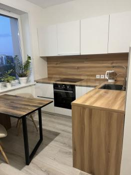 В квартире есть зона сна, зона отдыха, обеденная зона и также можно встретиться с друзьями для настольных игр, в помещении предусмотрены места для всех способов времяпровождения. На территории дома есть парковочные места, забор и закрывается на ворота, которые работают по приложению. В помещении мест общего пользования есть видеокамеры, тихие добродушные соседи. Прекрасный вид из окон, рядом автосервис, заправочная станция. В соседнем доме озон, яндекс маркет, аптека, продуктовый, пекарня, пивной магазин, кофейня, цветочный, хозяйственный магазин, овощная лавка, рыбная лавка. Продается уютная квартира студия с современным ремонтом и мебелью , необходимой для пары или одного человека. Дом находится в тихом новом микрорайоне, в шаговой доступности магазины, в 5 минутах от центра, есть прогулочные места рядом, в 2 остановках от Столицы, рядом школа и детский сад, удобная транспортная развязка.