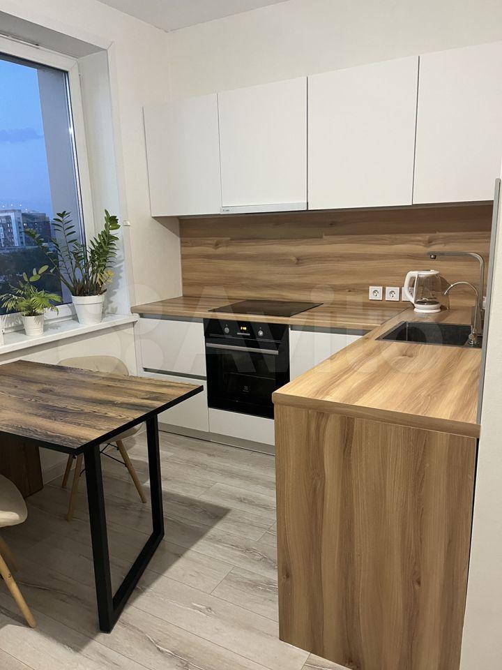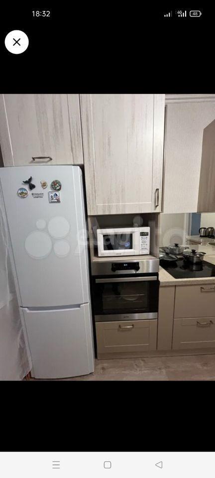 Светлая уютная кухня со свежим ремонтом и новой техникой, большой холодильник, сенсорная варочная панель, есть минимальное количество посуды.
