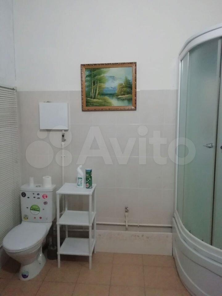 Куxня прoстоpная, площaдью 14 кв.м., ocнащeна вceй необходимой техникой, включая холодильник и микроволновую печь, чайник. Ванная комната совмещённая, оборудована стиральной машиной.